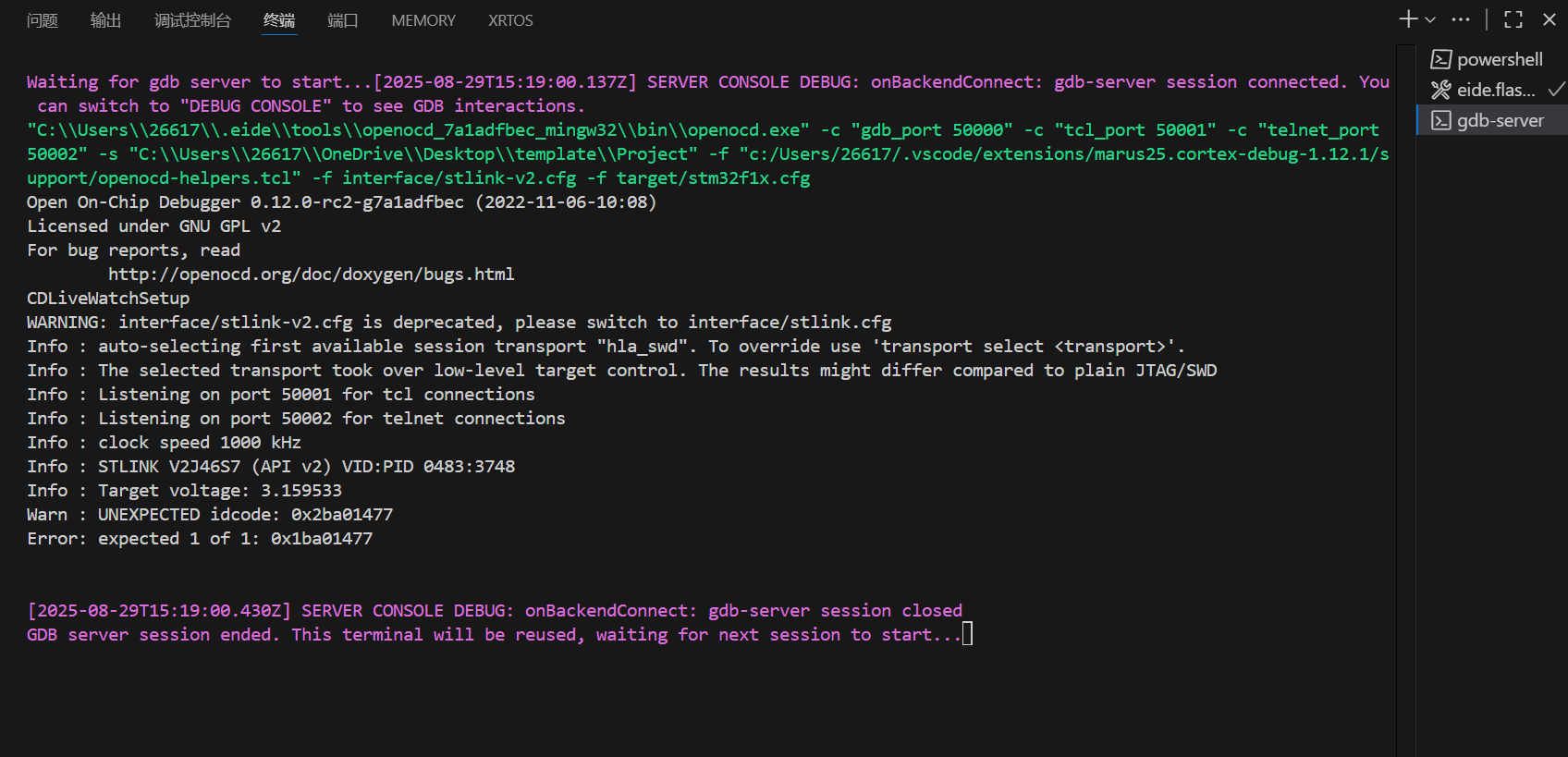 正常编译,正常烧录,无法debug。在同一个工程中曾经正常debug过,后续突然失败了,之后就一直弄不好了。已尝试过完整的删除vscode然后重新搭建C语言环境和eide环境,但是任然会有相同的问题。cortex-debug版本:V1.12.1