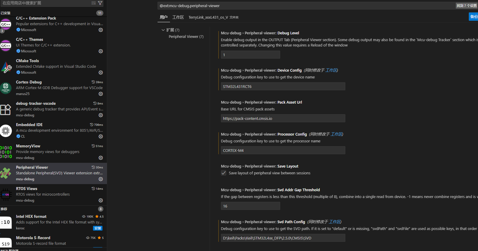在老版本ide,需要自己编写lanuch.json,在里面添加svdfile文件的路径就可以查看外设寄存器,新版EIDE不用手动编写lanuch.json,如何查看外设寄存器呢? 左下角是外设寄存器的值