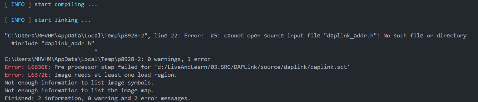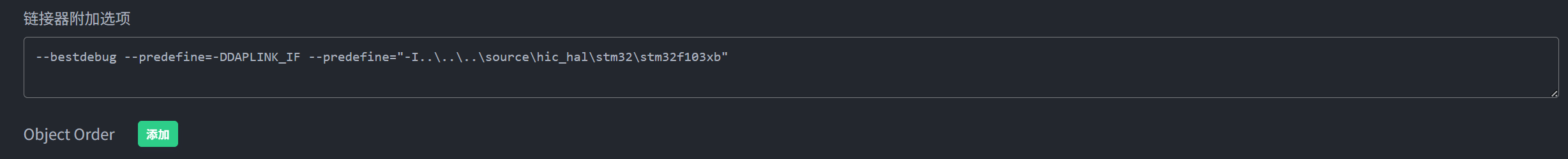 - 链接脚本 daplink.sct 文件中包含了头文件 "daplink_addr.h",该文件的项目路径在“source\hic_hal\stm32\stm32f103xb”目录下。keil中可以正常编译链接,链接器中配置选项如下